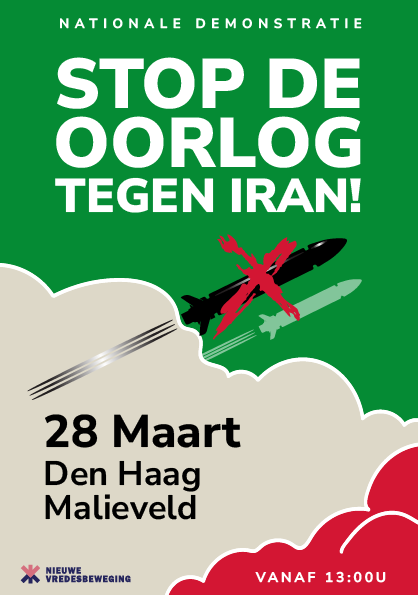 Op Zaterdag 28 maart vanaf 13:00u komen we massaal samen op het Malieveld in Den Haag om te zeggen: STOP DE OORLOG TEGEN IRAN