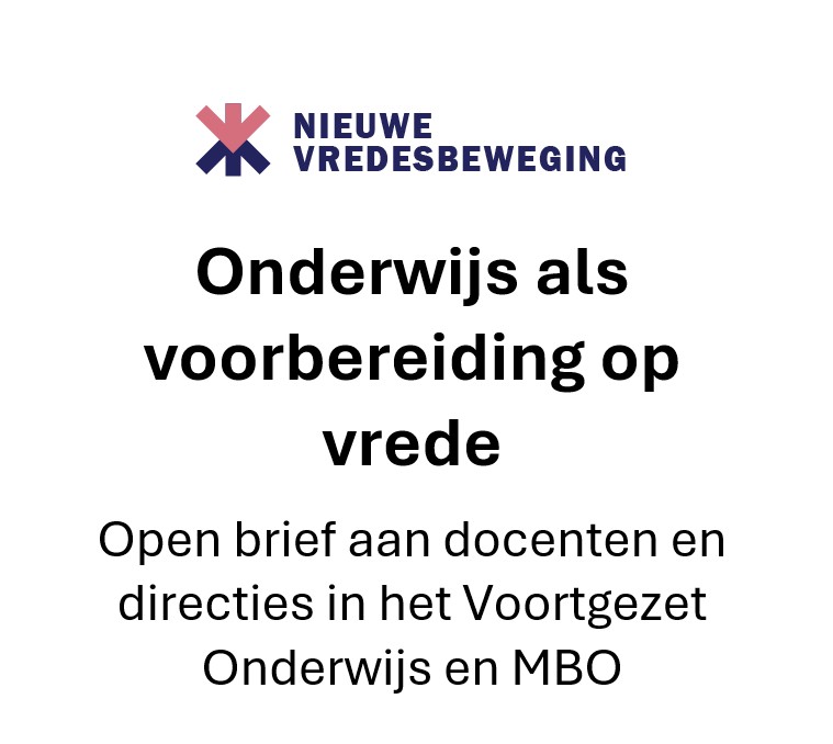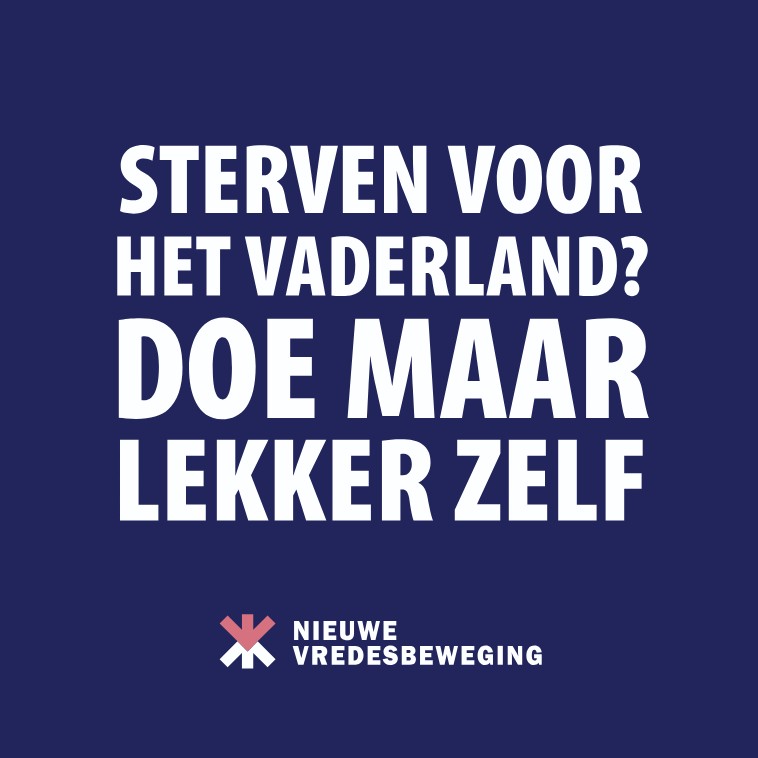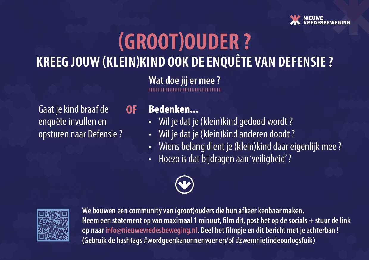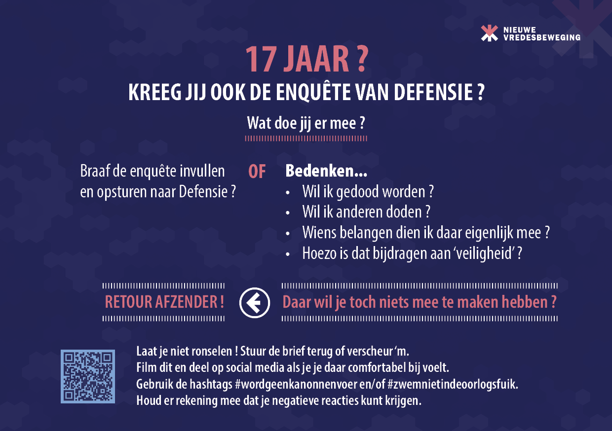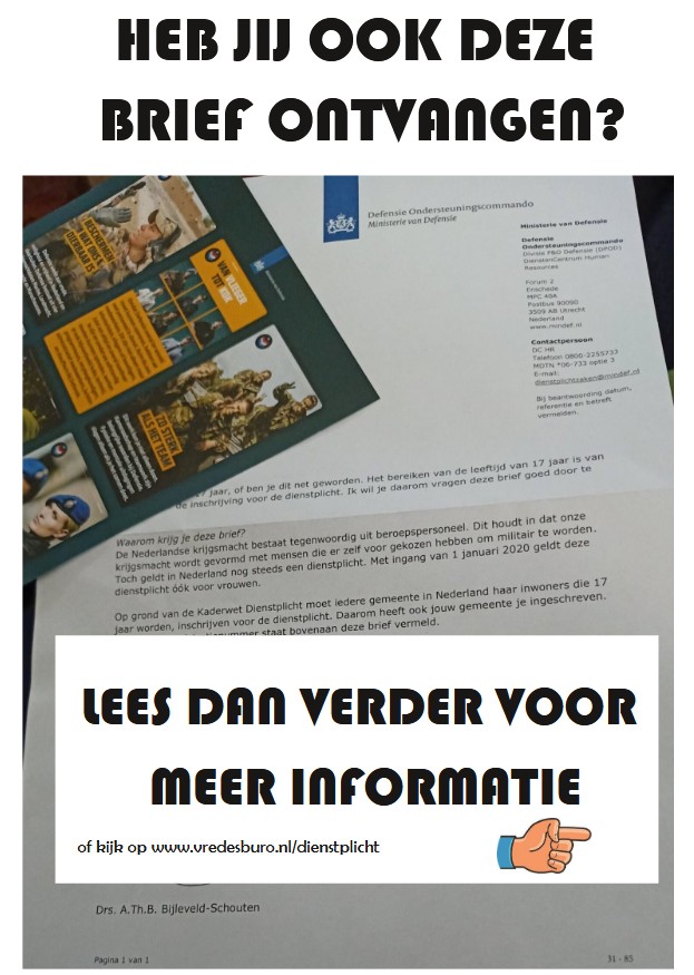 Wij roepen op hier niet aan mee te doen en deze brief te verscheuren of retour te sturen. Kies voor vrede, weiger mee te werken aan oorlogsvoorbereiding!